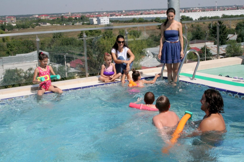 Distractia a continuat apoi la piscina, insa, nu inainte ca cei mici sa fie echipati corespunzator. Micutii au fost atent supravegheati de trei instructori, care i-au invatat sa inoate si sa prinda curaj sa faca sarituri in apa. Anca Serea si Diana Bart le-au facut galerie si i-au incurajat de pe marginea piscinei. Cu greu s-au lasat copiii scosi din apa, iar parerea unanima a fost ca, alaturi de vedetele Prima TV, au petrecut una dintre cele mai frumoase zile din viata lor.