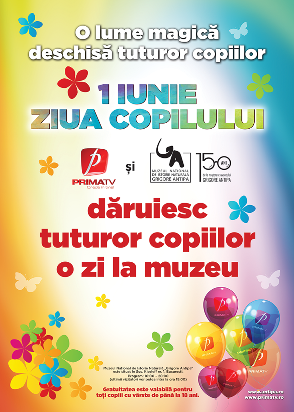 Cadoul pe care Muzeul Naţional de Istorie Naturală „Grigore Antipa” şi Prima TV îl fac tuturor copiilor de 1 iunie, este o lume magică deschisă la Muzeu. De ziua lor, copiii cu vârste de până la 18 ani vor avea acces gratuit în expoziţia permanentă. (vezi video aici)