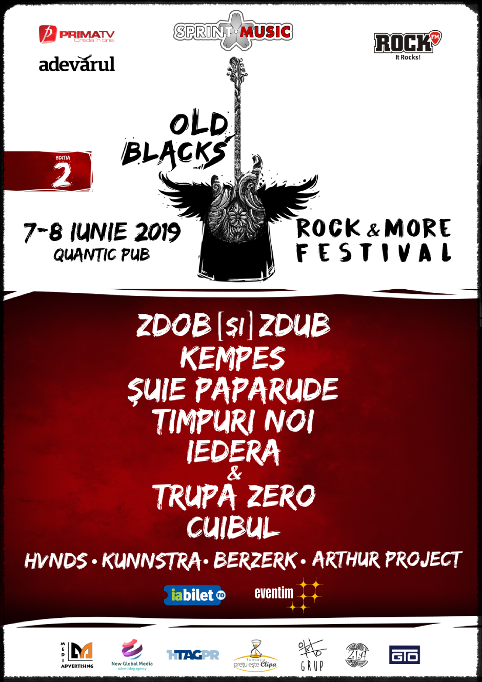 #OldBlacksFestival2 vine cu o formulă la fel de surprinzătoare şi în acest an: Zdob şi Zdub, Kempes, Şuie Paparude, Timpuri Noi, Cuibul, Iedera & Trupa Zero, HVNDS, Kunnstra, Arthur Project şi Berzerk. Abonamentele, în număr de doar 3000 bucăţi, disponibile pentru ambele zile, au fost puse în vânzare aici