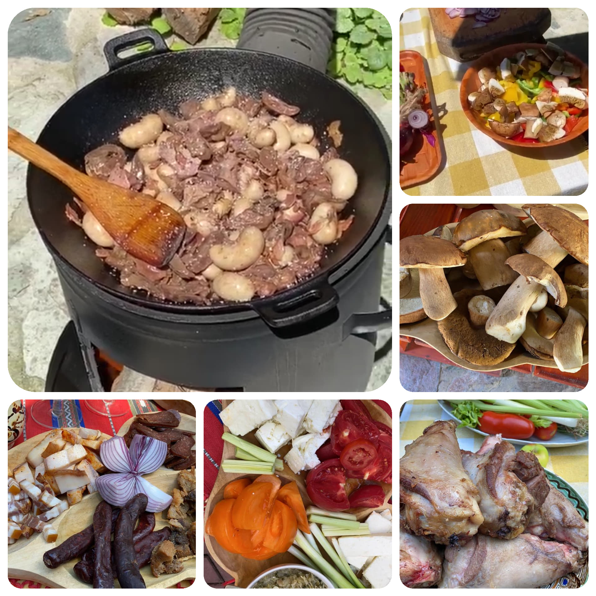 Se incinge untura si se rumenesc rasoalele de miel impreuna cu crenguta de rozmarin, dupa care se scot intr-un vas. In untura ramasa se calesc ceapa, morcovii si telina iar cand sunt calite se sting cu vinul. Asteptam putin pentru ca sa se evapore alcoolul, adaugam ciupercile, ardeiul copt si rosiile, potrivim cu sare si piper dupa care complectam pana la nivel cu supa de vita. Se etansaza bine vasul si se da la cuptorlul cu foc potrivit pentru doua ore si jumatate- trei.
