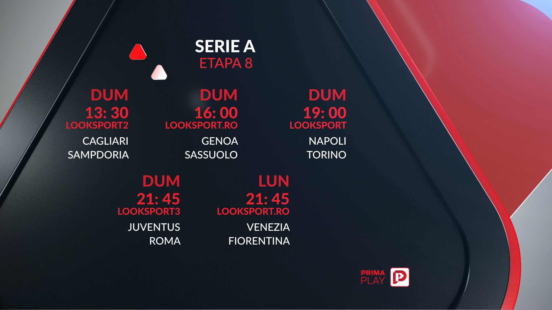 Sunt şi două derby-uri, extrem de atractive, în această rundă din Serie A. Sâmbătă, de la ora 19:00, se joacă Lazio - Inter, în direct pe Look Sport 3. Simone Inzaghi se întoarce pe terenul fostei sale echipe. Duminică este cea mai aşteptată confruntare din Italia, în acest final de săptămână. Mourinho merge cu AS Roma la Torino, pe terenul lui Juventus. Meciul este de la 21:45, pe Look Sport 3. Răzvan Marin poate fi urmărite şi el în direct, duminică de la ora 13:30, pe Look Sport 2.