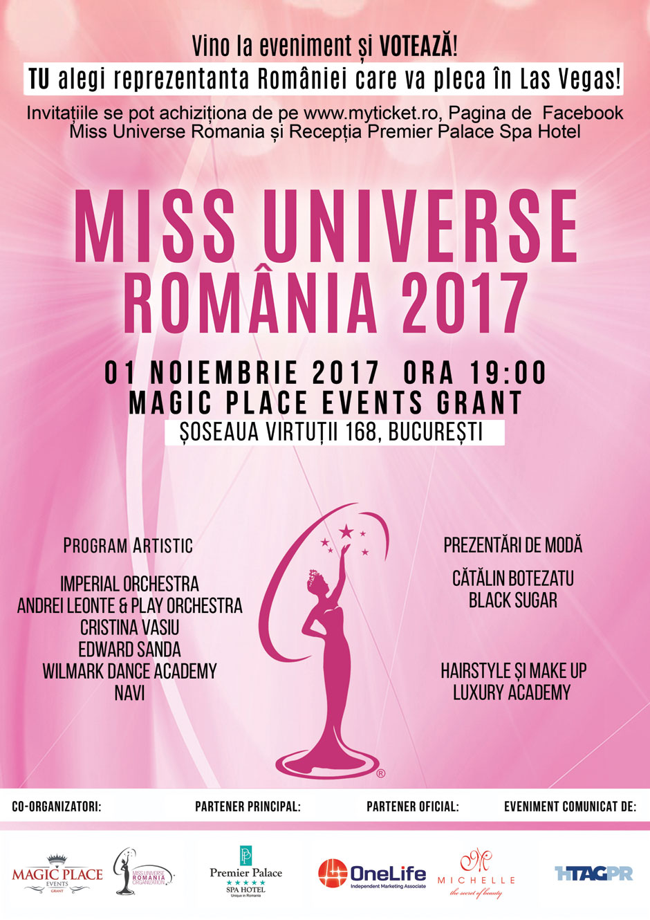 Evenimentul ”Miss Universe România 2017” este organizat de ExclusivEvent în colaborare cu Magic Place Events Grant şi comunicat de HTag PR.